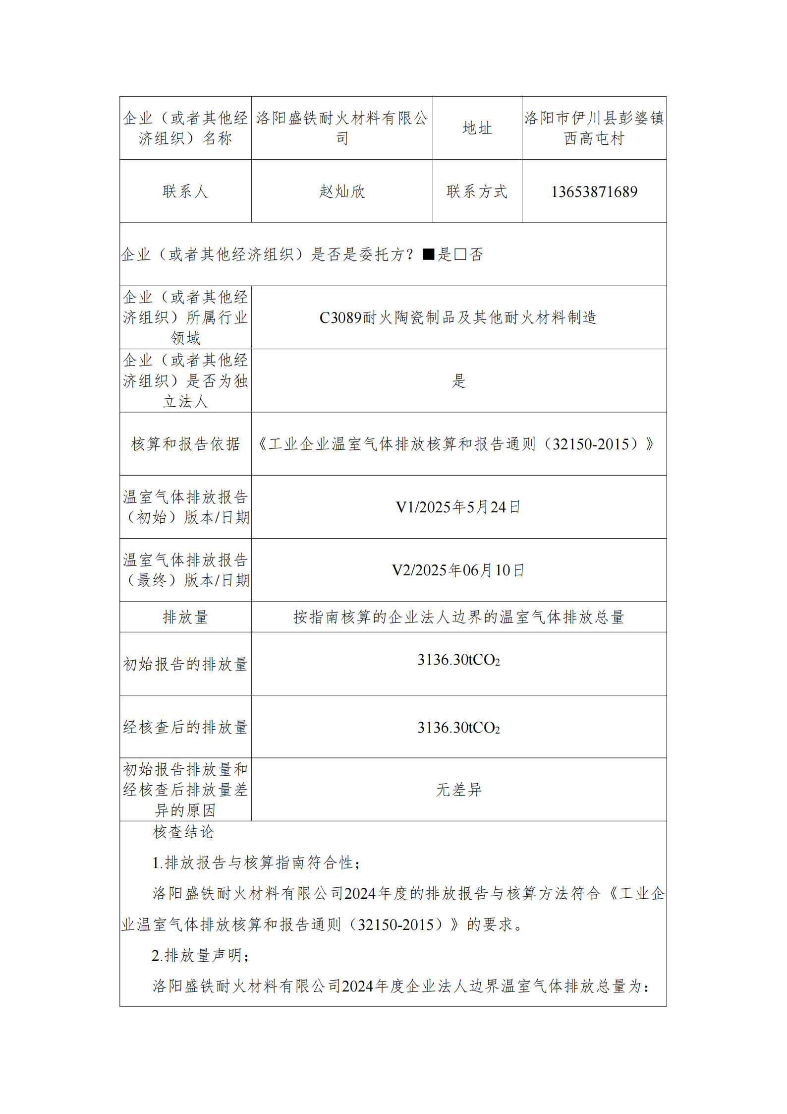 洛陽盛鐵耐火材料有限公司--碳核查報告